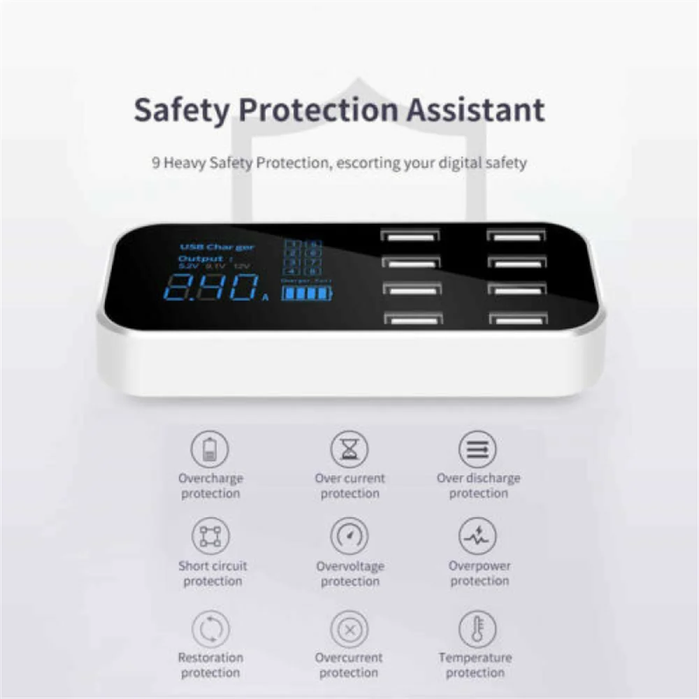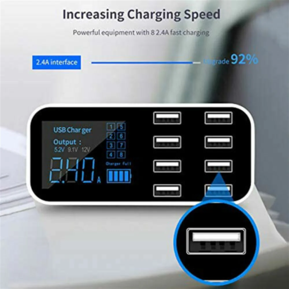 Gone are the days of juggling multiple adapters and waiting in line to charge your devices. Introducing our 8-Port USB Car Charger, the ultimate power station for all your mobile charging needs. With an impressive total output of 8A, our charger allows you to fuel up your devices swiftly and simultaneously, saving time and avoiding the hassle of prioritizing which device to charge first.