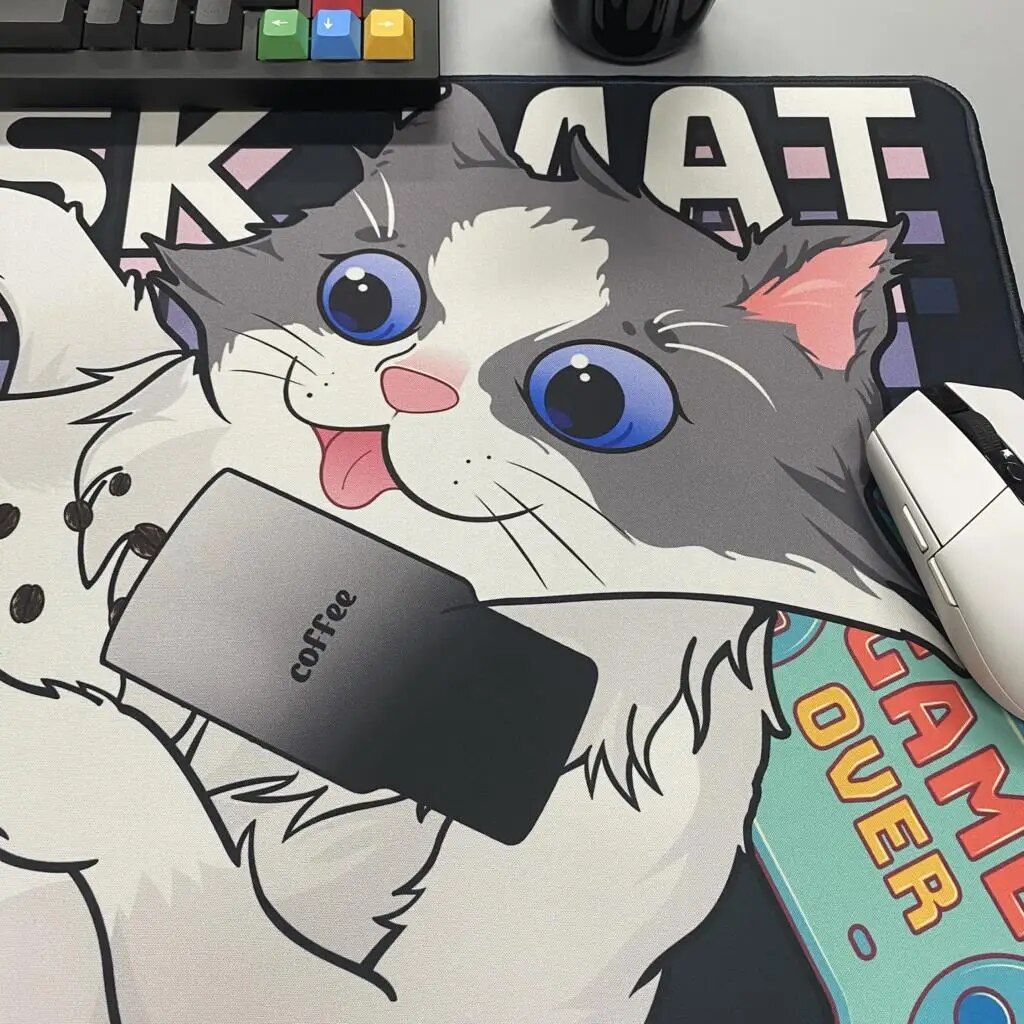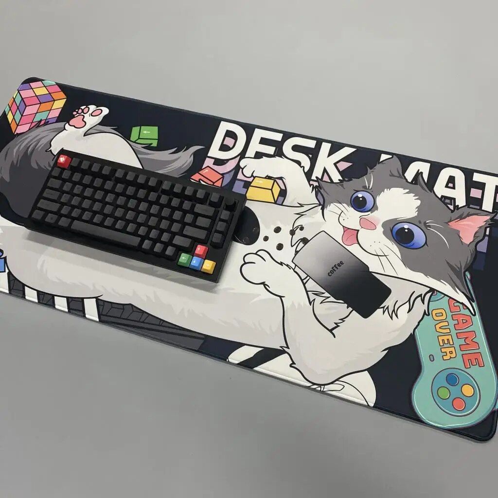 Cute Cat XXL Gaming Mousepad – Non-Slip, Stitched Edges, HD Print Desk Mat