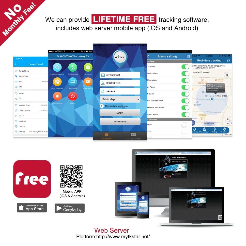 - History Route Playback: Trace back the routes for up to 6 months on both the app and web server.