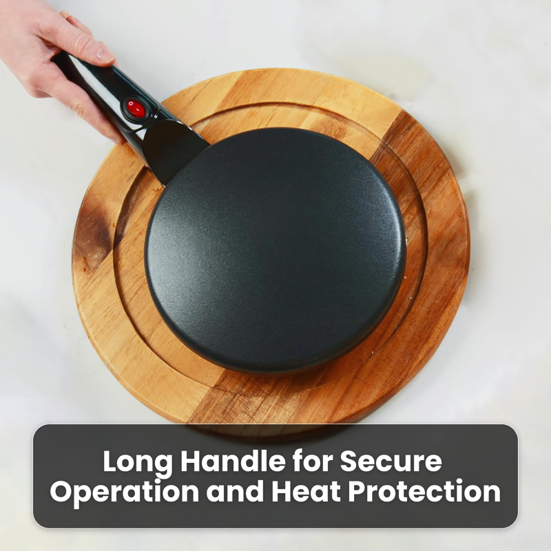 • Automatic Temperature Control: Perfectly cooked crepes every time, no more burning.