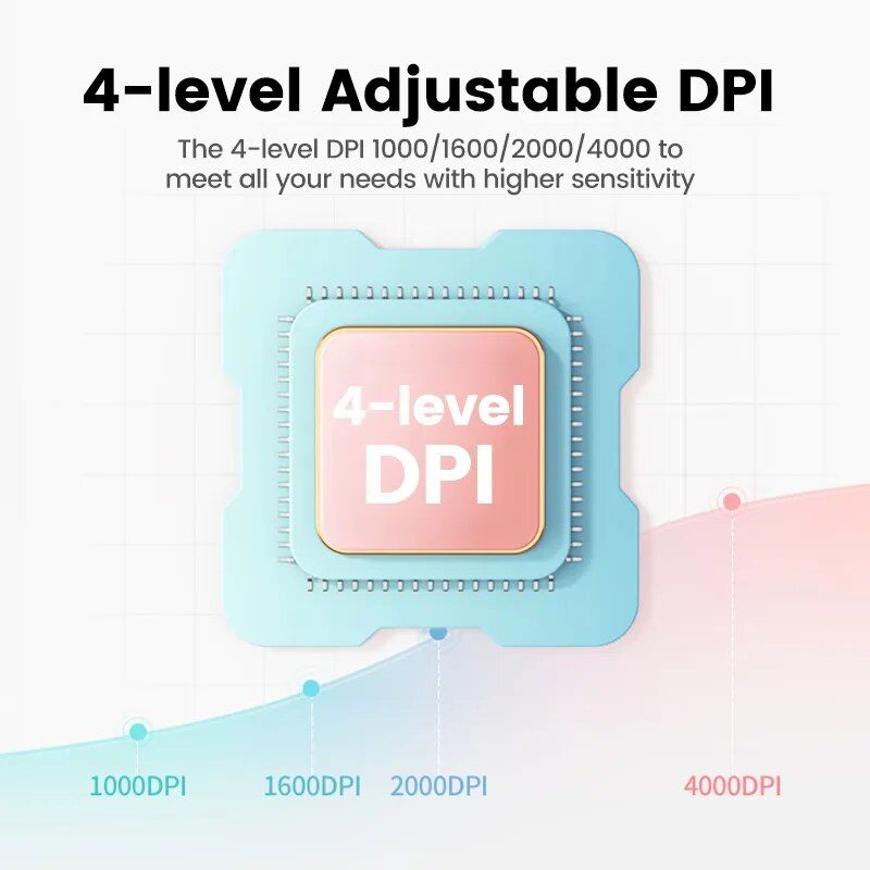 • Adjustable DPI Levels: Choose from 1000, 1600, 2000, or 4000 DPI for unmatched precision across various screen resolutions – from leisure browsing at home to ultra-clear editing on 4K/8K displays.