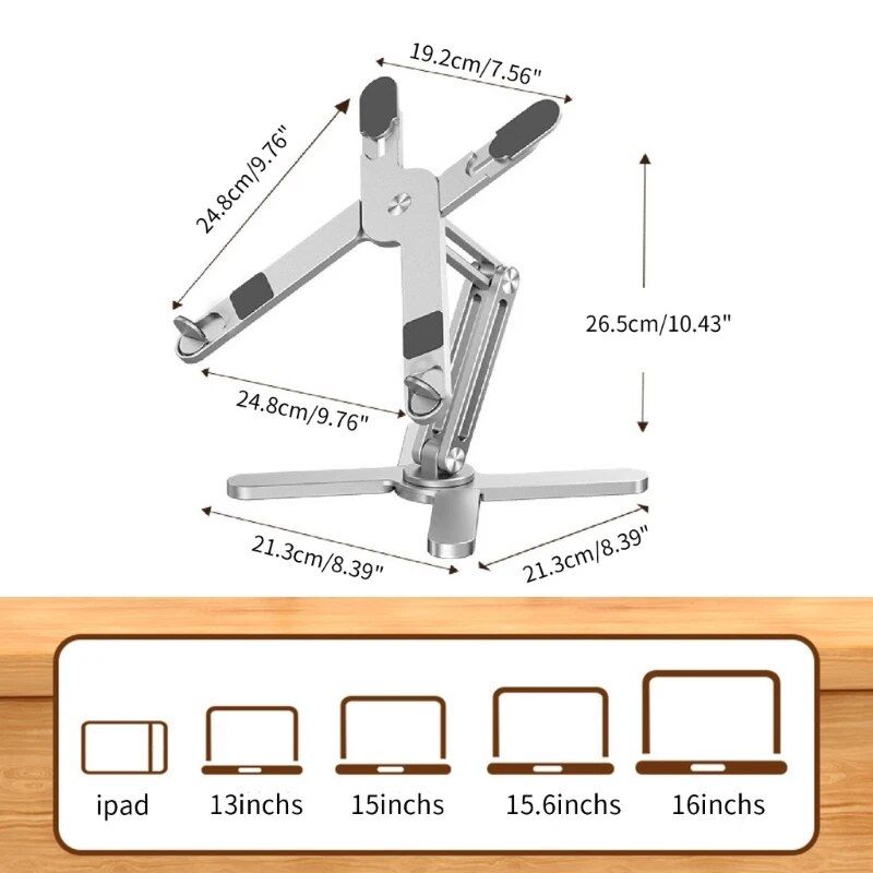 The heart of this laptop holder lies in its innovative design. Crafted from premium aluminum alloy, it boasts a sturdy yet lightweight build, perfect for the on-the-go lifestyle. The stand’s ability to rotate 360 degrees allows for effortless adjustment to your preferred viewing angle. Accommodating laptops ranging from 11 to 16 inches, it caters to a wide array of devices, ensuring a perfect fit for your laptop.