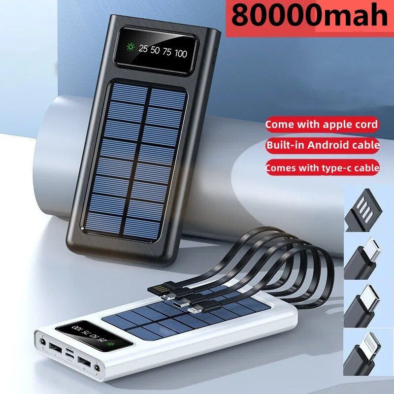 Ultra Capacity 80000mAh Solar Power Bank with Built-In Cables & LED Light