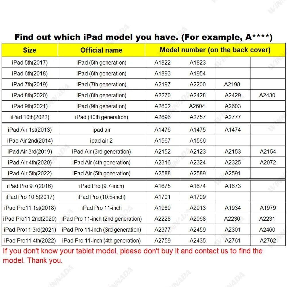 Before purchasing, kindly identify your iPad model number located on the back cover to ensure the best fit. If uncertain about your tablet model, please contact us, and we’ll assist you promptly. Your satisfaction is paramount, and we pride ourselves on stellar customer service. For those interested in bulk purchases or drop shipping, we offer special services tailored to your needs.