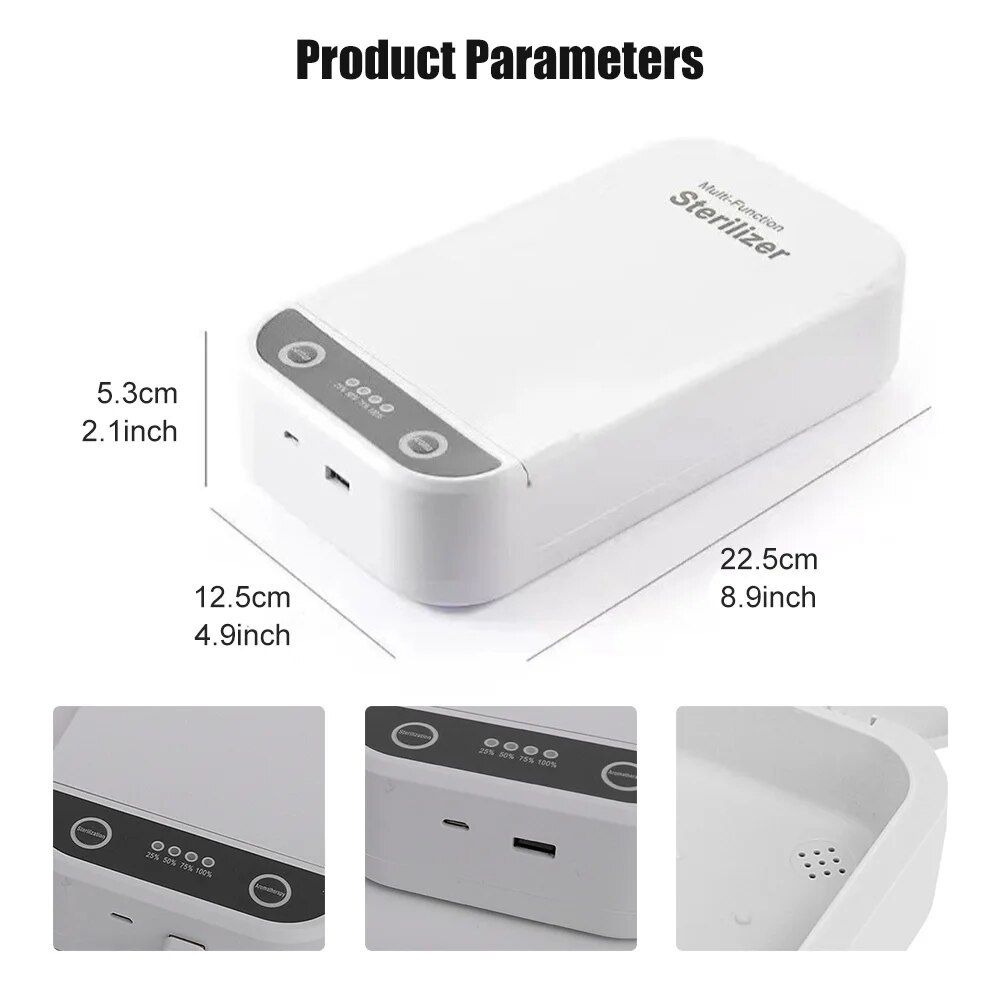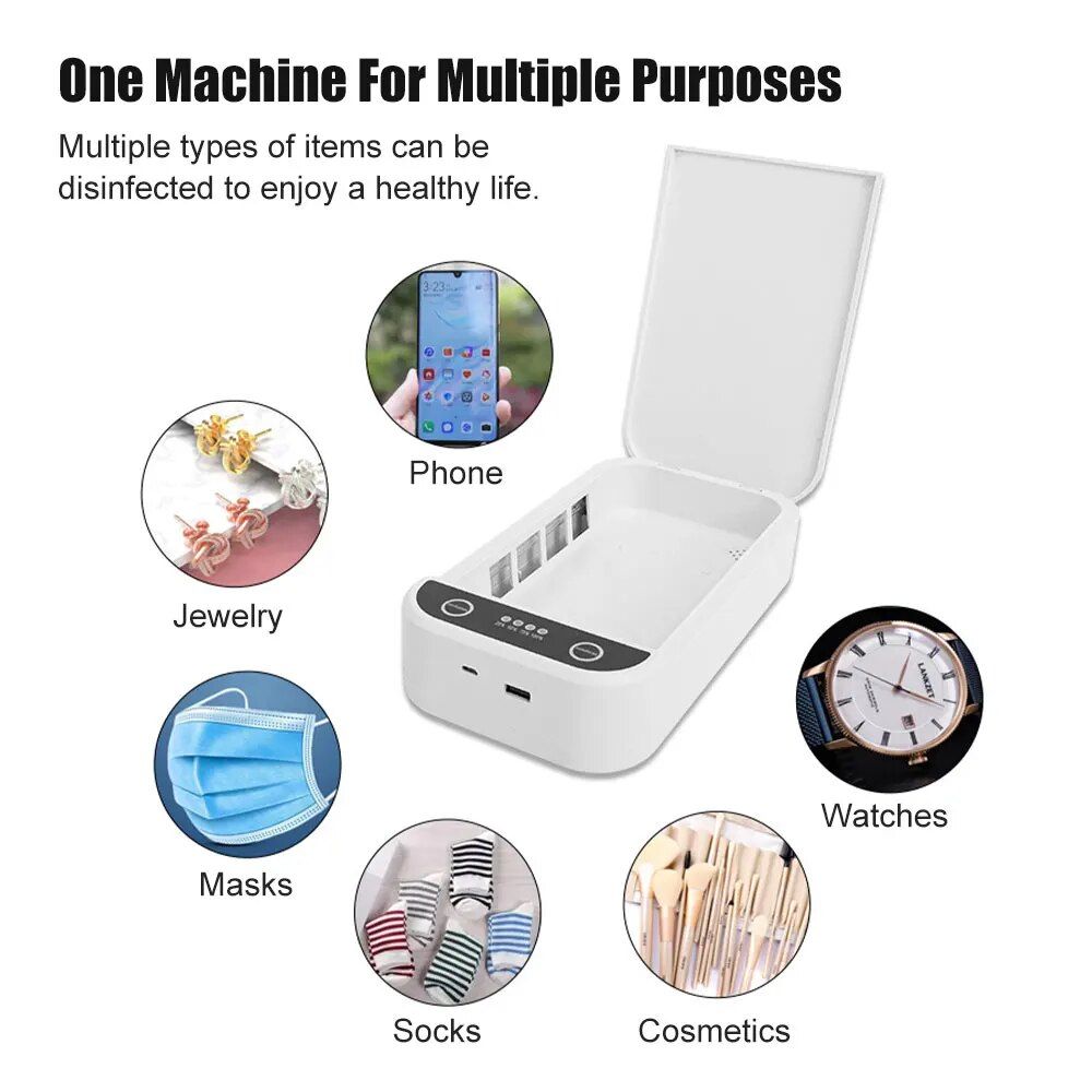 • Charge & Sterilize: With the integrated USB outlet, you can charge your phone while disinfecting it. Efficiency at its best!